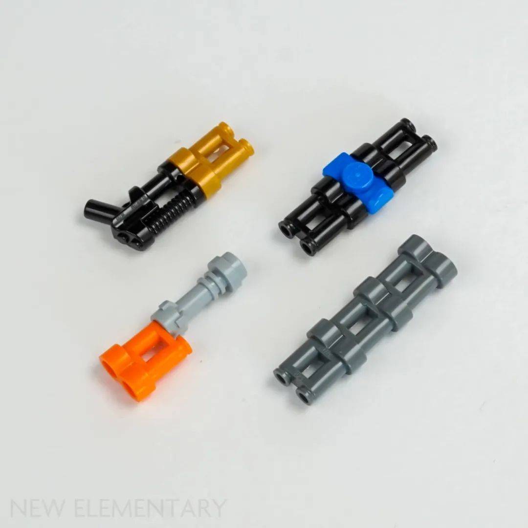 • 当双管枪(设计编号95199,迷你太空枪W.Rib Ø3.2轴,左上角显示为黑色)为2011年发布的《外星人征服》系列开发时,看到它能实际应用的一个地方就是这种双筒望远镜连接。设计师马克·斯塔福德用这个额外的功能来说服那些决定生产什么新零件的人,将其投入生产。