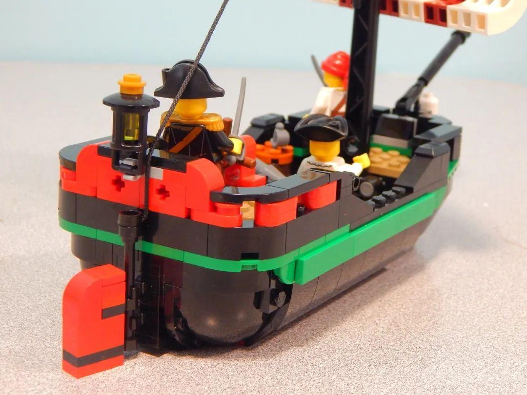 Elephant-Knight建造了一个海盗船,包括三名海盗,还有一个有巨大骷髅头的船帆,船杆顶端有一幅小的海盗旗,在船头处也有一个人仔头骨,海盗气息满满!
