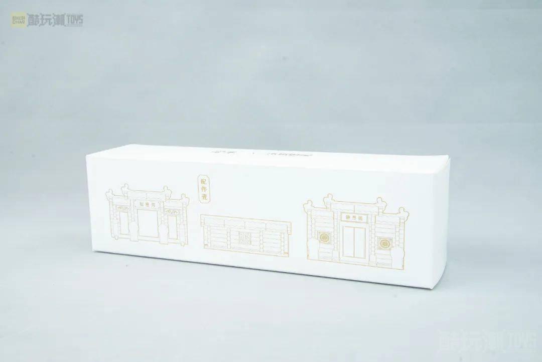 第一个开箱的是亭榭款,亭阁台榭,听名字就知道这个套装包含的应该就是亭子样式的积木。产品采用的是天地盖样式的外包装,整体外包装为白色。盒子正面四周印制着榫卯积木的字样,下方印有品牌LOGO,中间展示了套装包含的积木样式插画,看上去国风味十足,三款样式分别为扶风亭、晚晴轩和耳房。