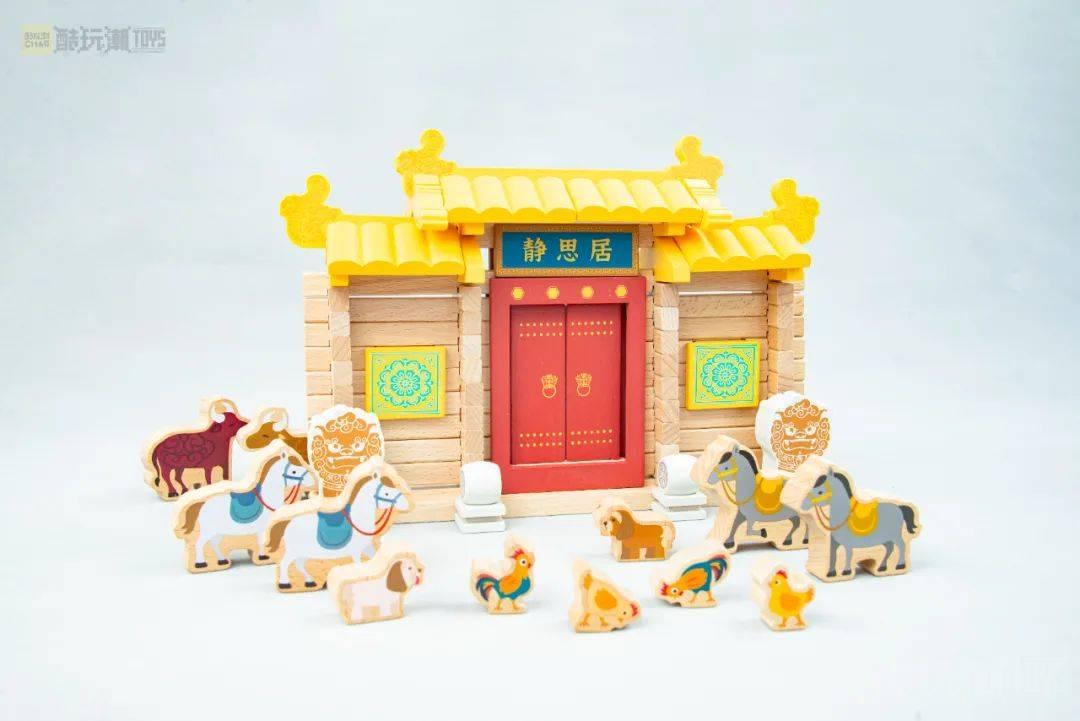 牌楼款的成品,通过零件的自由组合,可以组成五个样式,不过我相信,只要你发挥自己的想象力,肯定不止物种。首先拼搭完成的就是静思居。这个小场景的内容比较丰富,有各种小动物的印刷零件,做成了独特的田园风光。