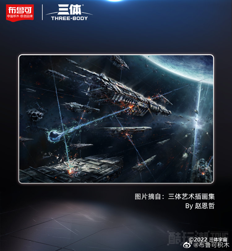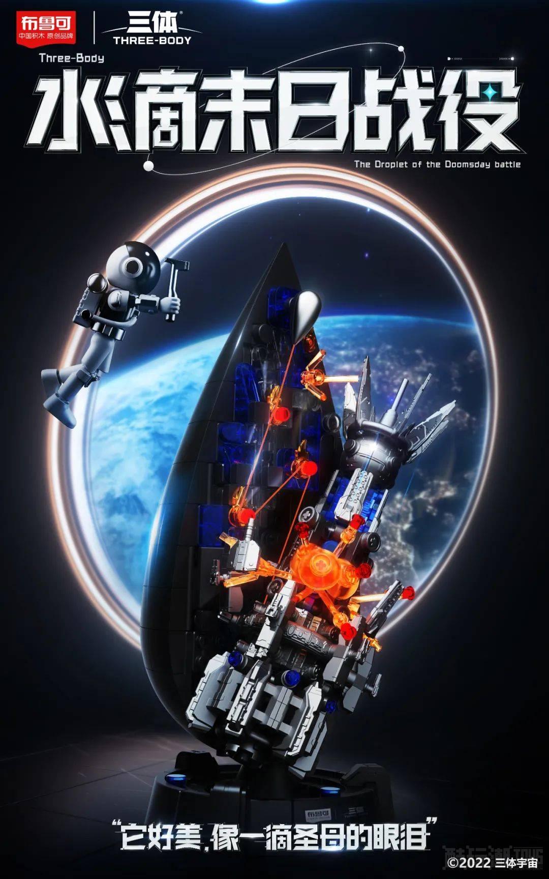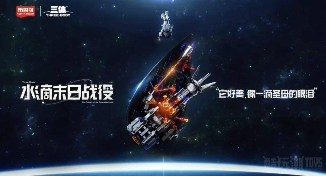 中国原创积木品牌布鲁可与中国原创科幻IP三体首次跨界合作,联袂演绎《三体》小说中最具震撼感的“水滴末日战役”篇章,首次实现用积木的形式还原文字场景的创新突破,推出布鲁可三体“水滴末日战役”新品积木。