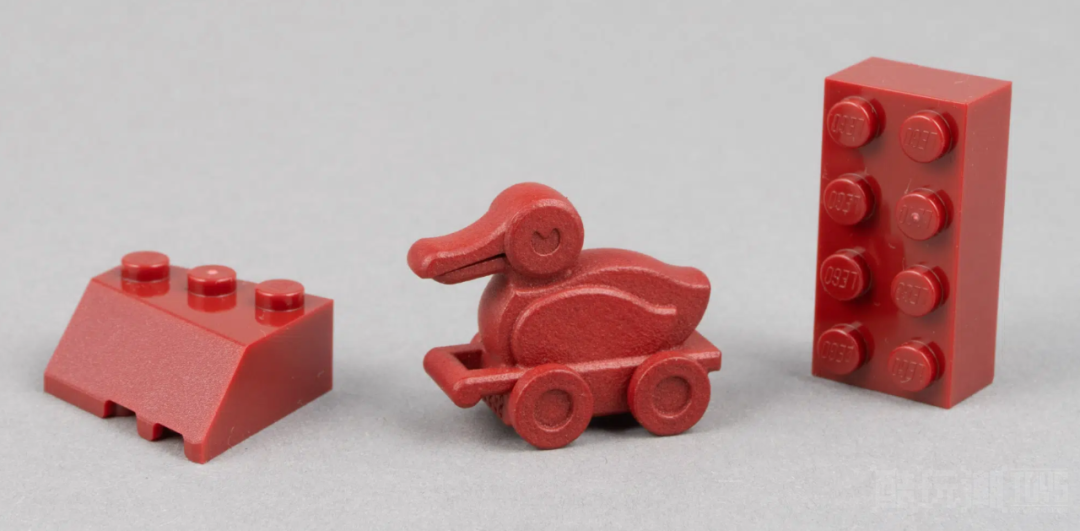 上周四在丹麦比隆的乐高之家举行的AFOL Day活动中,乐高集团为到场的每一位客人准备了一个用3D打印技术,制作的深红色木头鸭子形象的人仔配件。