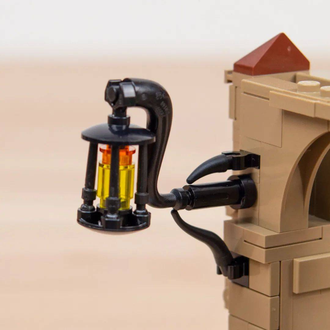 Jonas一直想用哈利·波特的魔杖来做灯,并且找到了一个很好的方法,用2×2圆板(2654)来固定它们。灯支架则由一个黑色的树干(43892)和一个蜡烛(37762)组成。