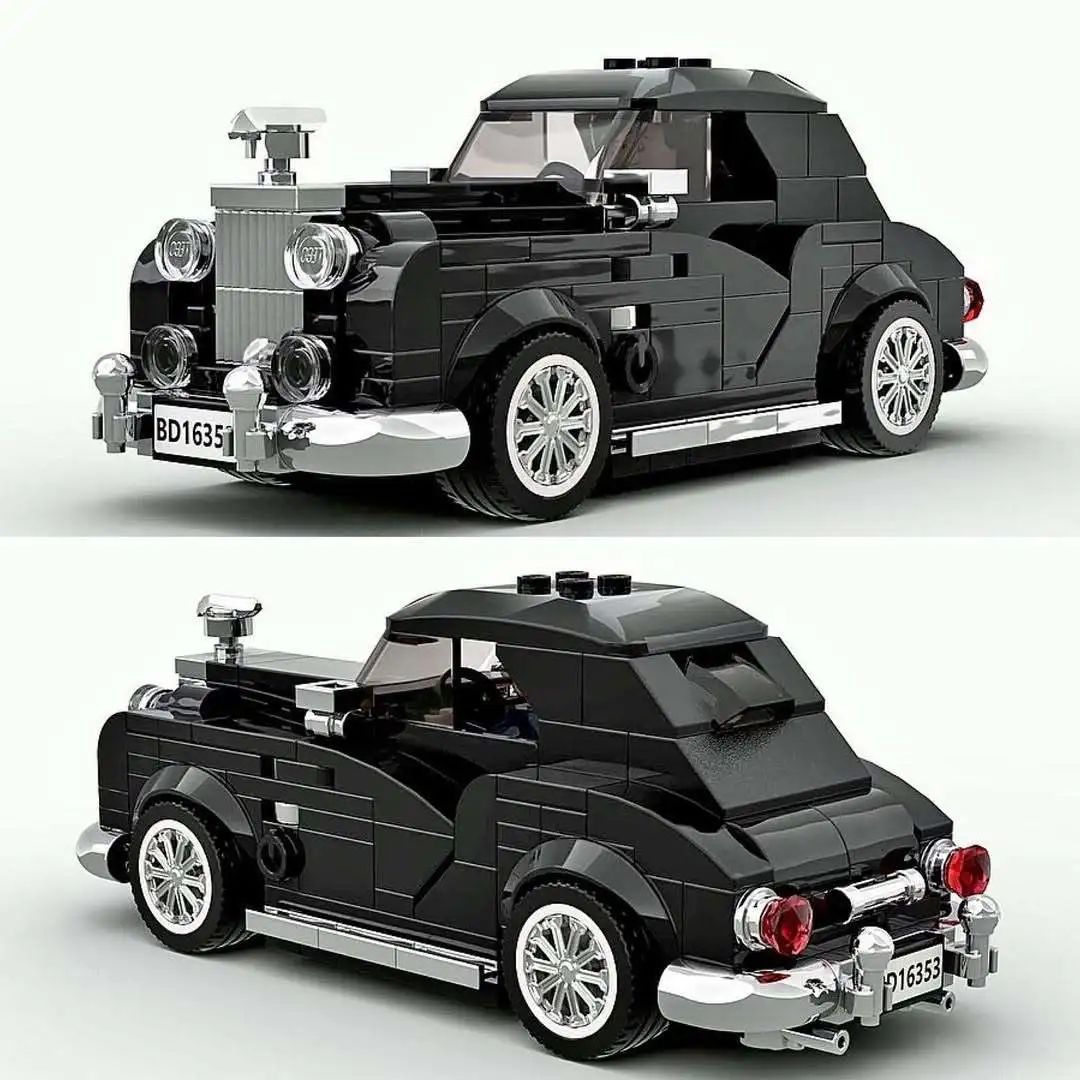 - 街道部分:灰色的石砖铺设细致真实,黄色的划线分隔道路,极具复古韵味。道路旁的经典黑色汽车模型,更为场景增添了一份精致与怀旧的都市风情。