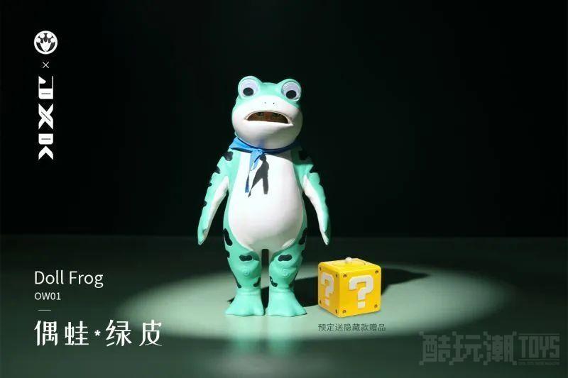 JXK Studio 与偶蛙合作,推出“绿皮偶蛙”涂装完成品,尺寸全高约 16 公分,以眼神空洞的青蛙布偶装为造型,设计出贴着咕溜眼、有着微胖身形的绿色青蛙装,除了有布制的蓝色小领巾之外,背面还有拉链、小纽扣的可爱造型!更特别的是,的青蛙头套可以拿下来,在头部装上附属的猫咪头雕,就可以从挖空的嘴巴处看见青蛙装里面的中之喵…!
