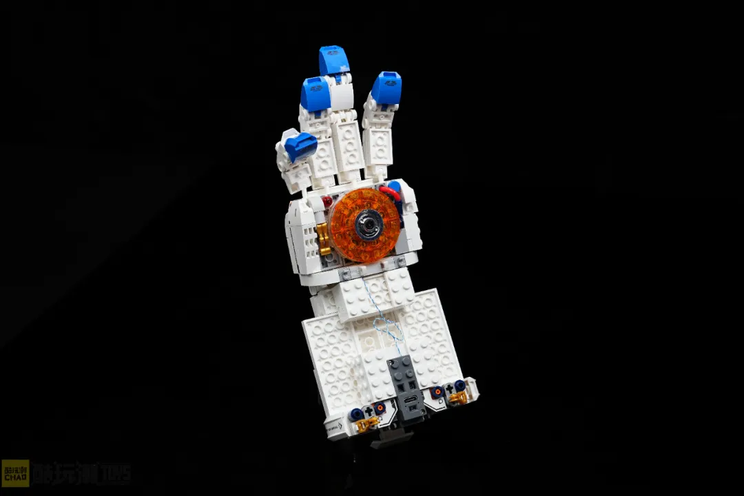 最后的最后,我们搭建了破晓星际手套的底座,虽然底座使用了大块的轮毂零件,但在细节上做得十分到位。
