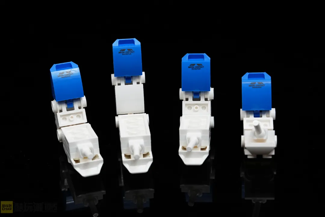 作为身体躯干的是硕大的白色壳子,由三个零件组成,内部镶嵌了两个球形关节。躯干表面有用于连接积木颗粒的螺柱。