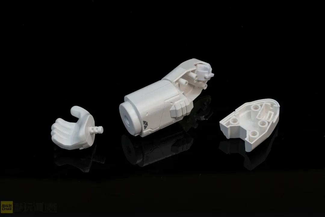 1号袋零件完成了手腕部位的一半,顶部是连接手掌的十字轴,底部有裸露在外的机械内构。