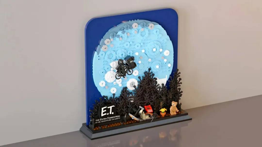 E.T.和艾略特骑着自行车飞向森林,满月背景被许多影评人视为电影史上最神奇的时刻。这一画面无疑是斯皮尔伯格1982年的经典影片《ET外星人》中最著名的画面。对Brickester来说,这是80年代最经典的电影画面,根据电影中的这一场景,他使用695个零件制作了这个透视的立体模型。