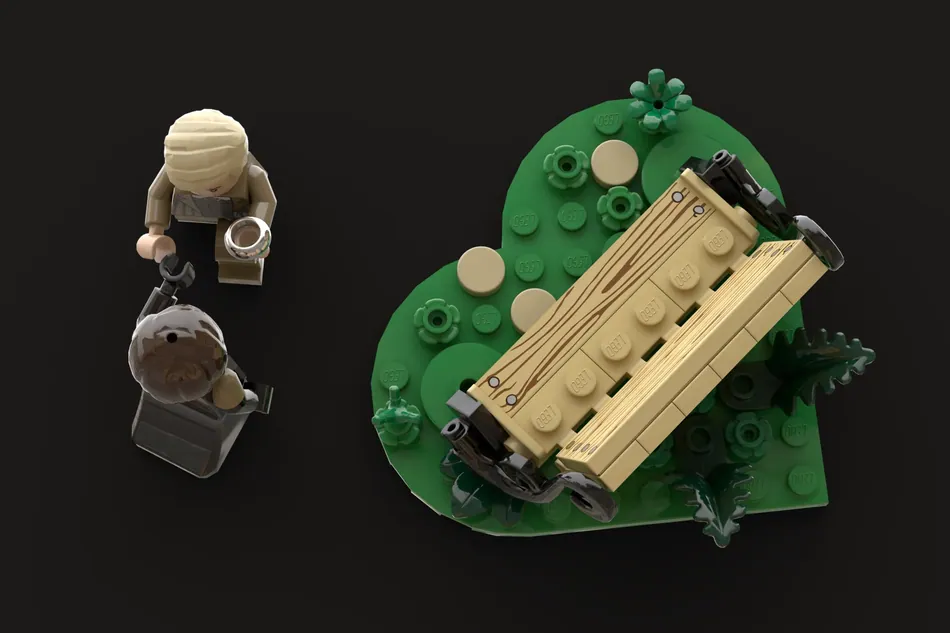 BRO3 希望能将这个场所的独特氛围融入模型中,因此特别选用了心形的底座和装饰性的长椅扶手。