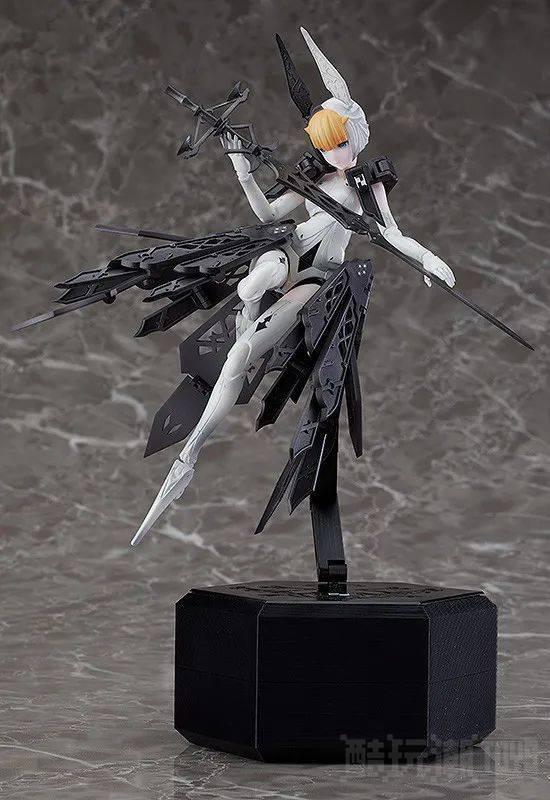 “LXXVIII platinum 1.5”是将 2019 年初版部分改良而来的升级版,整体造型基本与初版相同,但部分零件调整为能更加轻发组装的规格。套件由黑、白…等成形色零件与部分涂装完成零件组成,由浅井真纪设计的“fragment”素体拥有娇小的 20 公分尺寸但可动性十分灵活,能做出人偶般可爱的细腻动作,或像妖精般展开武装优雅飞舞。收纳可折叠的装甲后,蜷曲的素体可完整收纳至如宝石盒般的六角形底座中,相当美丽。此外普通脸、闭眼笑脸及微笑脸等三种替换表情零件也经过改良,采用 UV 印刷技术使图样更加细腻、更具耐久性。