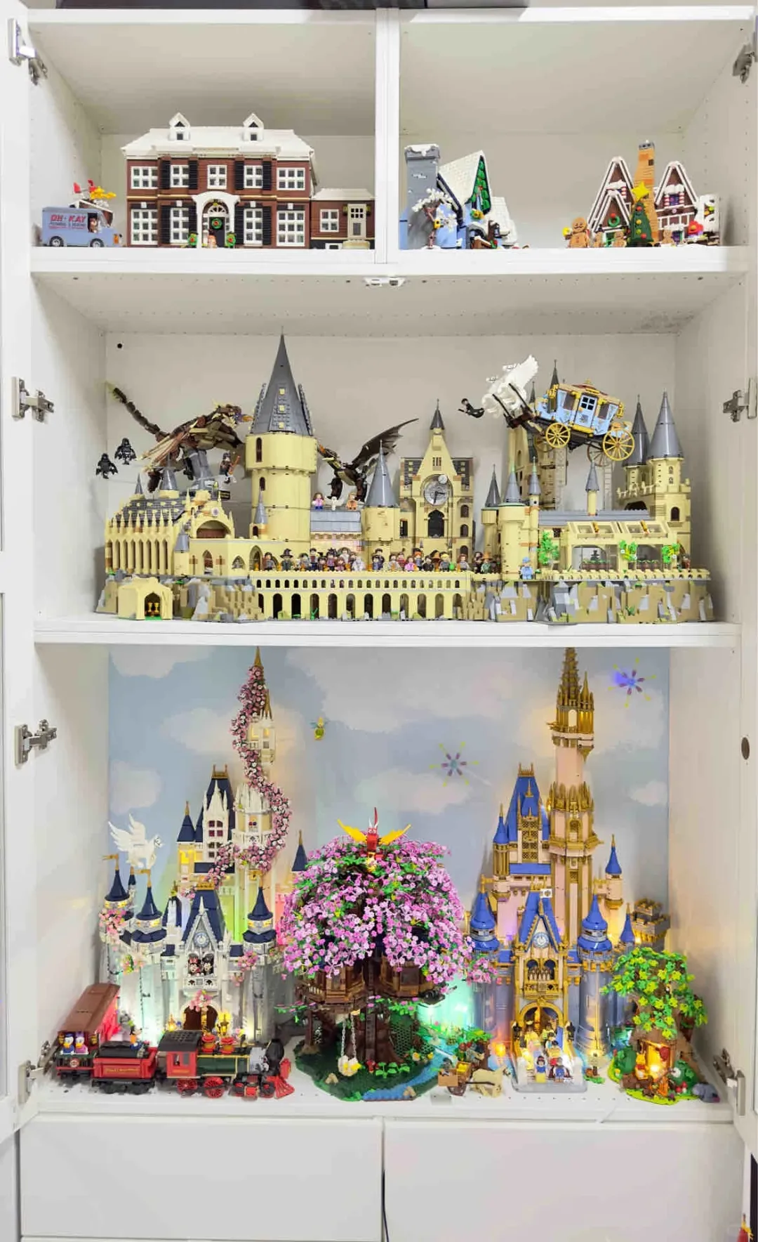 小编说:看得出这位乐高玩家对哈利波特爱得深沉,不仅给霍格沃茨套装单独一格柜子,还自己进行MOC创作,增添了不少灯光件,整体看上去如梦如幻,氛围感直接拉满!
