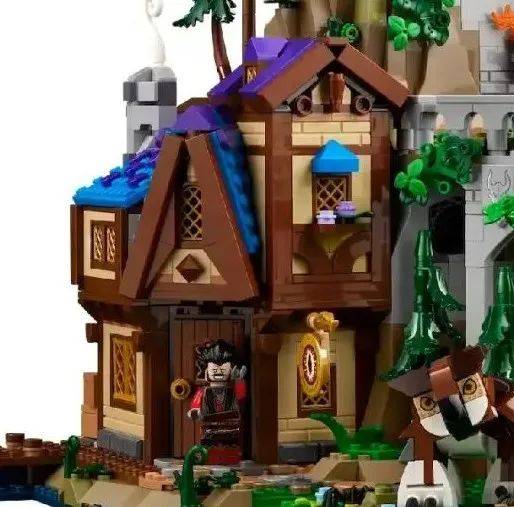在官方套装中,那座典型的中世纪风格酒馆得以保留,仍展现出其具有转角阁楼的特色建筑形式,但屋顶的颜色变更为蓝色和紫色,赋予了酒馆更加鲜明的视觉特征。