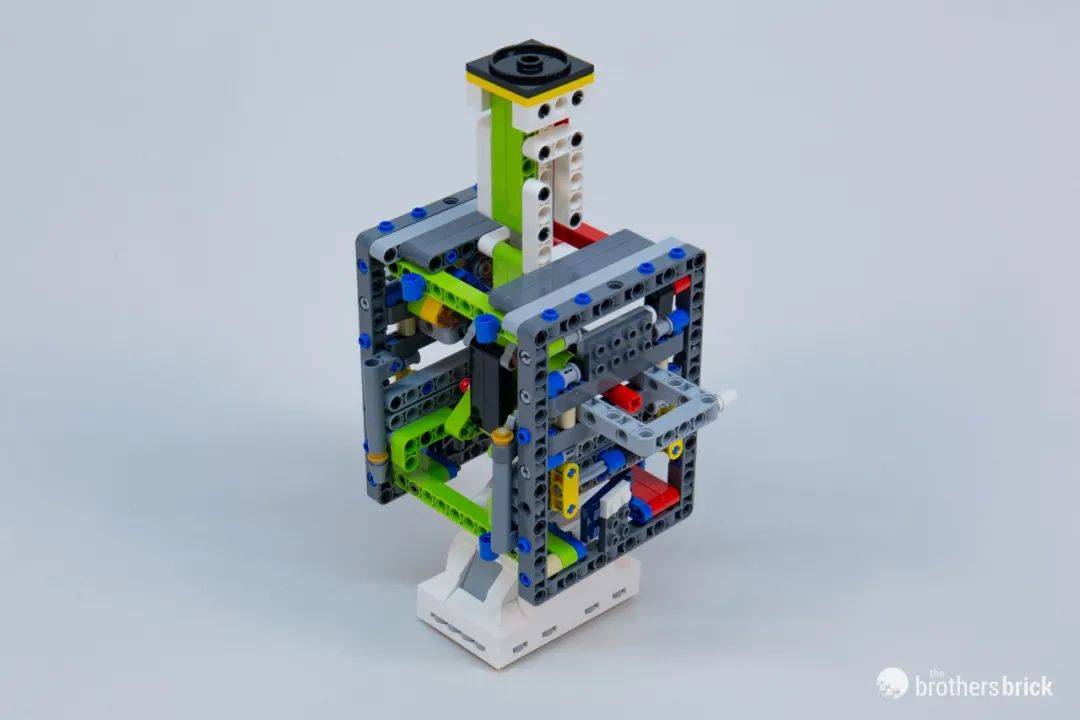 这个弹出式潜望镜在拼搭过程中还遇到了点儿小问题。说明书(注意,背景已经从黑色变成了灰色)上显示,潜望镜的垂直部分通过杆而不是反向螺柱连接到顶部,以实现半个螺柱的错位。