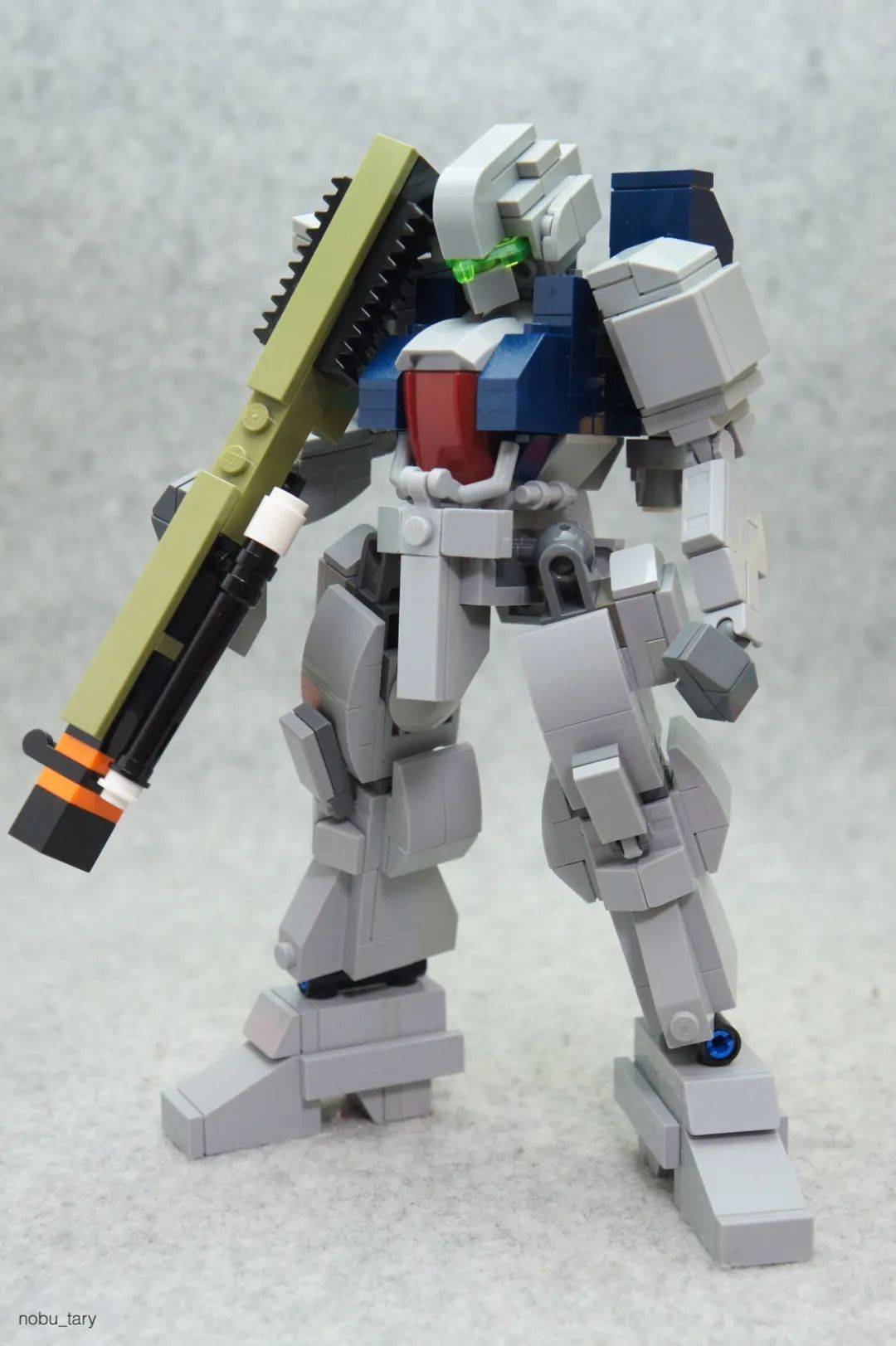 这个乐高机甲让人不禁一笑,作者将复古科幻与现代美学融合一起,膝盖上的手提包太有趣了。