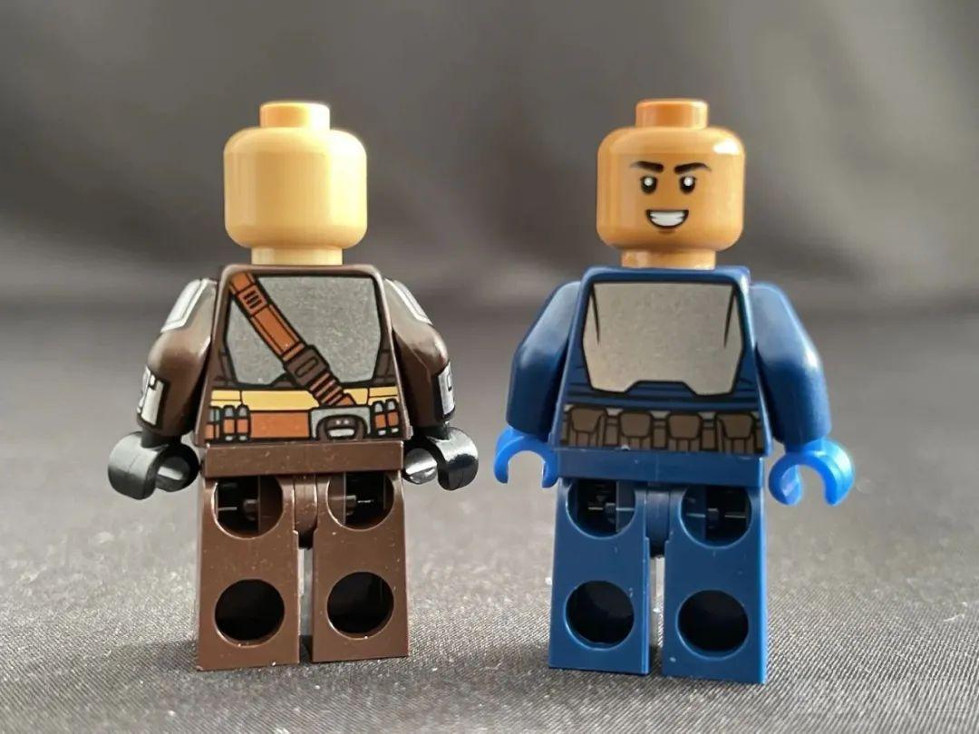 Din Djarin的头盔下面是去年就在套装中使用过的单面印刷表情,遗憾的是人仔并没有附赠额外的头发零件。两个曼达洛人人仔都搭配了一个喷气背包零件,这个零件已经在其他套装中被广泛使用。