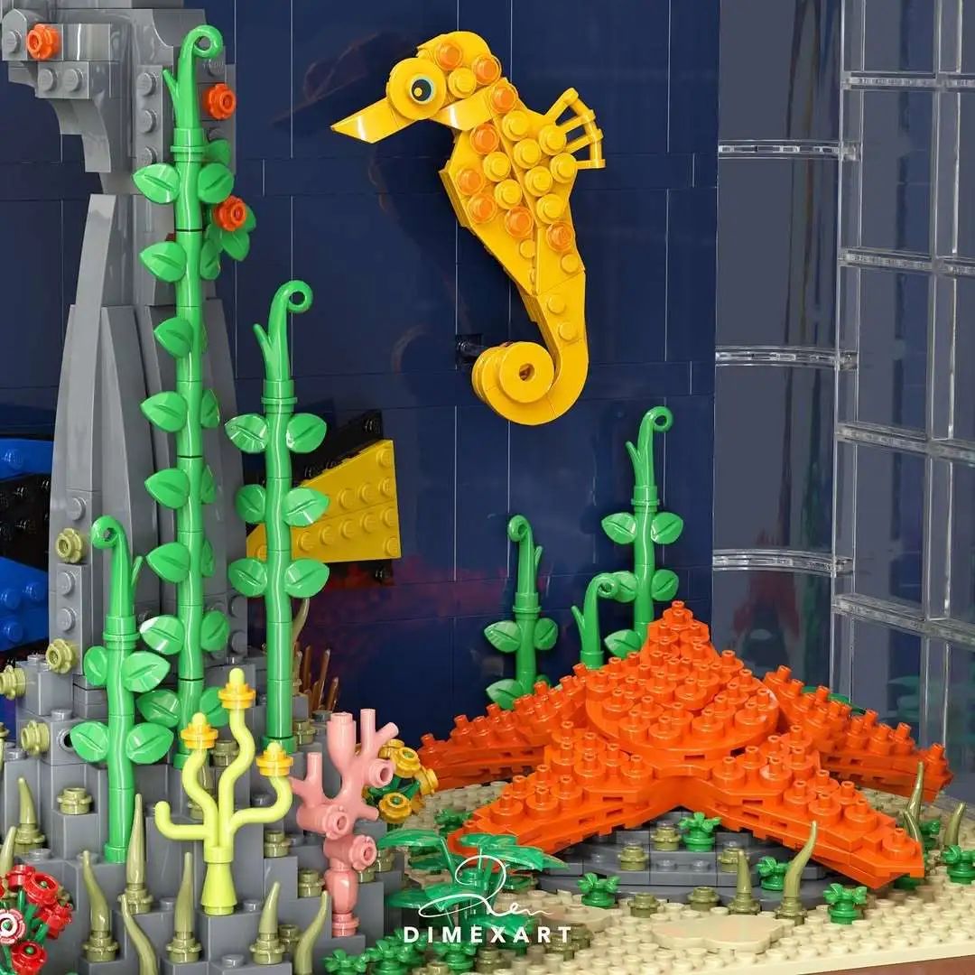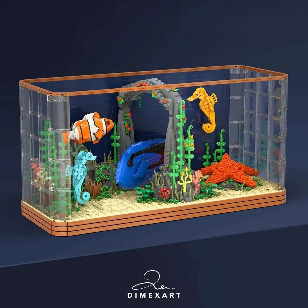 这个水族箱MOC作品,绝不仅仅是一件拼搭艺术品。它更像是一种关于自然的凝视——设计者通过对每一块砖的巧妙运用,将海洋生物的姿态与生态的灵动完全还原在方寸之间。