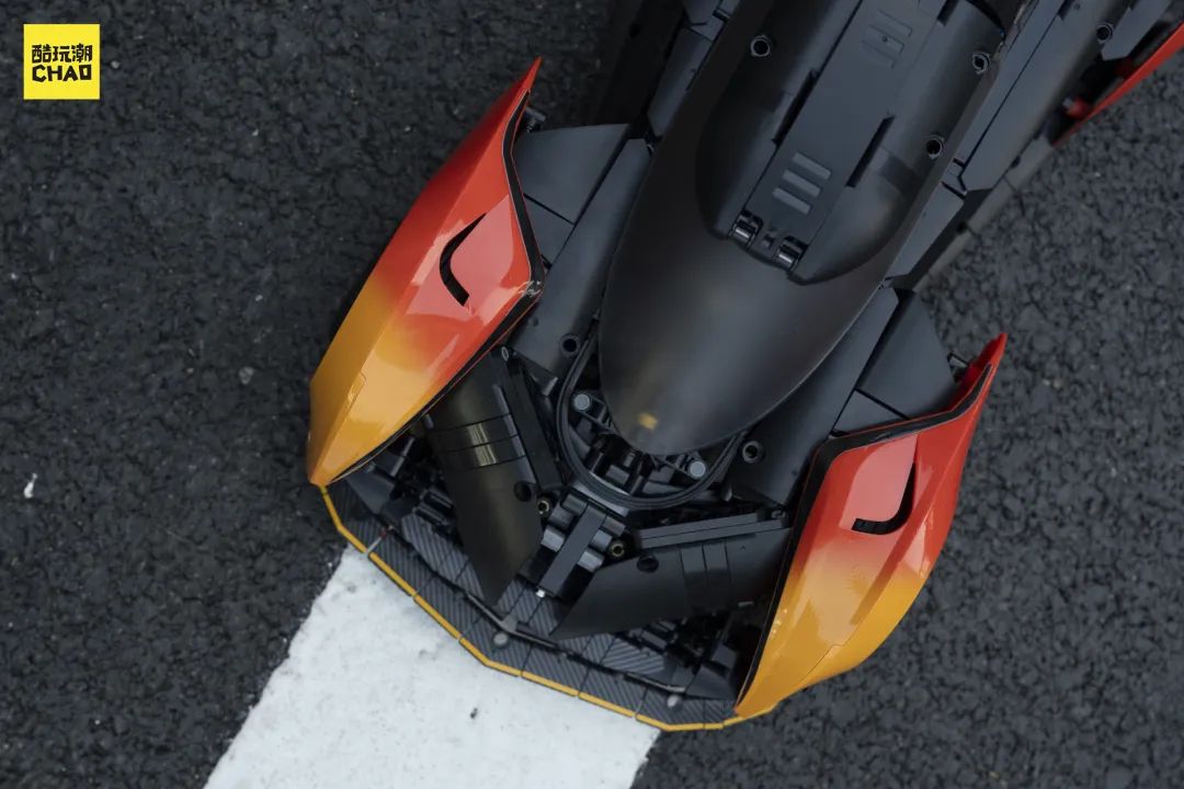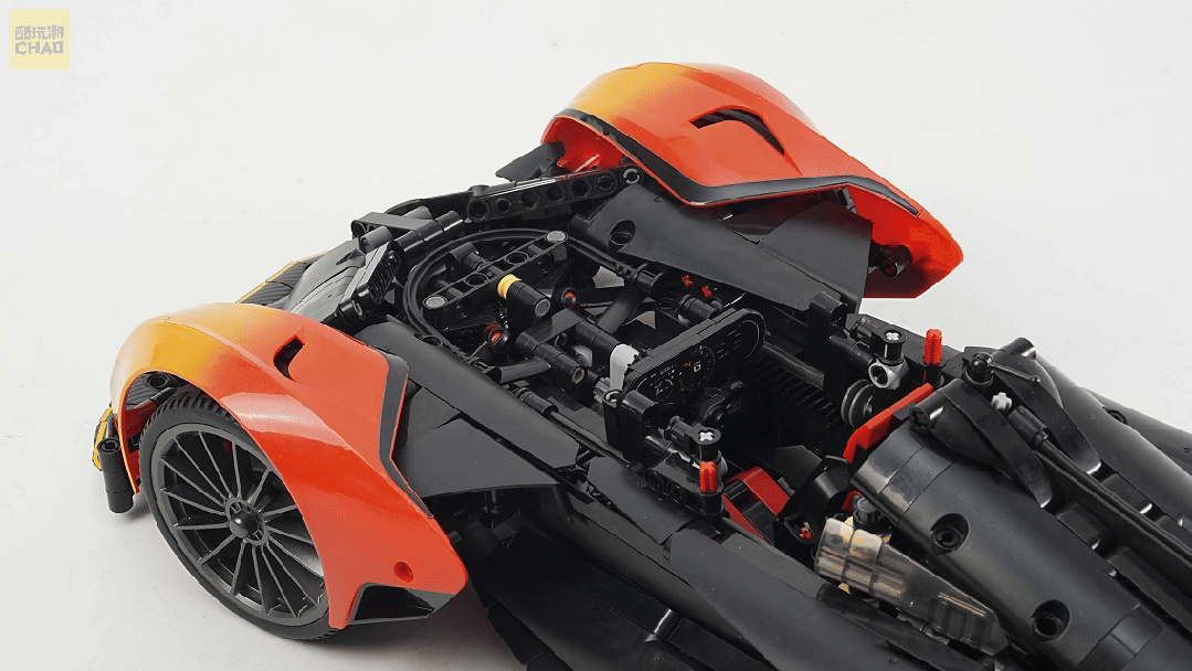 拼装完成后,迈凯伦Solus GT的模型令人惊叹。车身线条流畅,外观细节高度还原。前铲的设计充满攻击性,挡风玻璃的加入更是提升了整车的质感。这在积木赛车模型中并不多见,展现了品牌的创新思维。