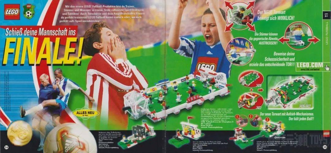 在2000年欧锦赛期间,第一次出现了真正可以玩乐的乐高足球场,足球可以在小平台的帮助下“踢”出去,而小平台上有一些人仔。乐高其实早在1997年7月就为这种游戏机制申请了专利。