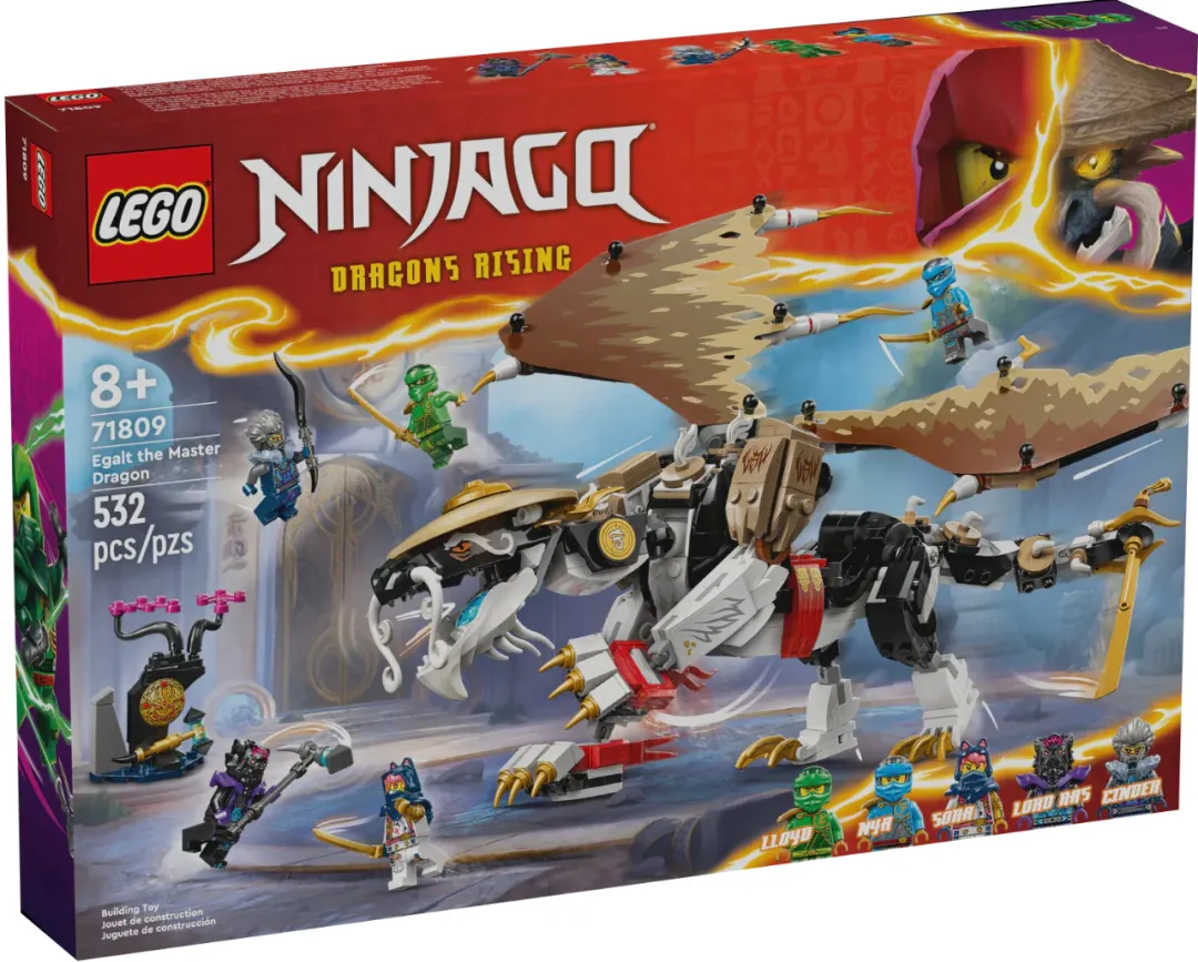 同样还是幻影忍者系列,3月上市了一款71810 幼龙阿尤,拼搭了一只幼年版本的西方龙(阿尤),同时这款套装还有索拉、阿林和恶狼面具武士的人仔,玩家可以使用这款套装进行还原《幻影忍者:神龙崛起》动画里的剧情。